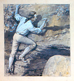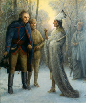 A major campaignWalter Haskell Hinton and the Washington National Insurance Company enjoyed a business relationship that lasted about 35 years, beginning in the late 1920s. During that time Hinton produced around 25 large paintings of episodes in the life of George Washington. With these images, the insurance company first produced calendars, and later, educational packages that were distributed for many years to schoolchildren to teach them about Washington and the American Revolution. The series also appeared in a television broadcast in 1975, which reached 80 million people. Hinton had been sent along to Washington National by the calendar firm of Brown & Bigelow, who hoped the company would order promotional calendars. Hinton's aptitude for history painting combined with his knowledge of the 18th century happened to fit plans that the corporation already had underway to commission paintings of George Washington's life. Hinton solved a dilemma they were having: all the paintings they already had commissioned from other artists focused on military themes, but they wanted non-miltary subjects since public sentiment at that time was not sympathetic to war. Right there in the office, Hinton began sketching out pictures of Washington in his daily life as a family man and young professional, and he won the contract. From then on, Hinton usually came up with the scenes on his own and proposed them to the Company. He was careful to paint only episodes that actually happened, so the story of young George cutting down a cherry tree, known to be a myth, is not included. Washington is seen going about his daily life as a surveyor, stepfather, brother, general and statesman. A main challenge was keeping Washington’s likeness consistent not just from panel to panel, but with popular portraits of him as well. He had to be recognizable to children. As a result, Washington looks rather wooden and expressionless in the series. The repetition of this stoic, ennobled Washington helped instill him as a national icon for students.